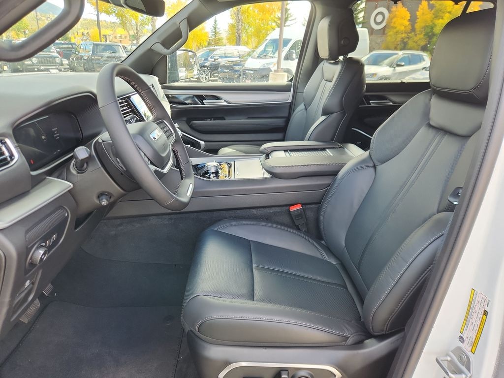 Check out all these great option's Carbide Appearance Package, Convenience Group I (DISC) (2nd Row Manual Window Shades, Auto Adjust In Reverse Exterior Mirrors, Auto High Beam Headlamp Control, Auto Power Folding Exterior Mirrors, Auto Power-Folding Mirrors, Auto-Dimming Exterior Driver Mirror, Drowsy Driver Detection, Exterior Mirrors Approach Lamps, Exterior Mirrors w/Memory, Exterior Mirrors w/Supplemental Signals, Heads-Up Display, Heated Exterior Mirrors, Intersection Collision Assist System, P&P Park & Unpark Assist w/Stop System, Quadra-Lift Air Suspension, Semi Active Damping, Side Distance Warning, Surround View Camera System, and Traffic Sign Recognition), HD Trailer Tow Package (Heavy-Duty Engine Cooling, Trailer Brake Control, and Trailer Hitch Zoom), Quick Order Package 25F Carbide (Black Exterior Accents and Wheels: 20" x 9" Gloss Black Painted Aluminum), 10 Speakers, 118 MPH Maximum Speed Calibration, 3rd row seats: bench, 4-Wheel Disc Brakes, ABS brakes, Air Conditioning, Alloy wheels, AM/FM radio: SiriusXM with 360L, Anti-whiplash front head restraints, Apple CarPlay/Android Auto, Audio memory, Auto-dimming door mirrors, Auto-dimming Rear-View mirror, Auto-leveling suspension, Automatic temperature control, Brake assist, Bumpers: body-color, Compass, Delay-off headlights, Driver door bin, Driver vanity mirror, Driver's Seat Mounted Armrest, Dual front impact airbags, Dual front side impact airbags, Electronic Stability Control, Emergency communication system: Jeep Connect, Four wheel independent suspension, Front anti-roll bar, Front Bucket Seats, Front Center Armrest w/Storage, Front dual zone A/C, Front fog lights, Front License Plate Bracket, Front reading lights, Fully automatic headlights, Garage door transmitter, Genuine wood console insert, Genuine wood dashboard insert, Genuine wood door panel insert, Heated door mirrors, Heated front seats, Heated rear seats, Heated steering wheel, Illuminated entry, Knee airbag, Leather Trimmed Bucket Seats, Low tire pressure warning, Memory seat, Navigation System, Normal Duty Suspension, Occupant sensing airbag, Outside temperature display, Overhead airbag, Overhead console, Panic alarm, ParkView Rear Back-Up Camera, Passenger door bin, Passenger seat mounted armrest, Passenger vanity mirror, Power adjustable front head restraints, Power door mirrors, Power driver seat, Power Liftgate, Power passenger seat, Power steering, Power windows, Radio data system, Radio: Uconnect 5 Nav w/10.1" Display, Rain sensing wipers, Rear air conditioning, Rear anti-roll bar, Rear dual zone A/C, Rear reading lights, Rear seat center armrest, Rear window defroster, Rear window wiper, Reclining 3rd row seat, Remote keyless entry, Security system, Speed control, Speed-sensing steering, Speed-Sensitive Wipers, Split folding rear seat, Steering wheel memory, Steering wheel mounted audio controls, Tachometer, Telescoping steering wheel, Tilt steering wheel, Traction control, Trip computer, Turn signal indicator mirrors, Variably intermittent wipers, Ventilated front seats, Voltmeter, Wheels: 20" x 9.0" Premium 2 Aluminum, and Wheels: 22" x 9.0" Painted Gloss Black.