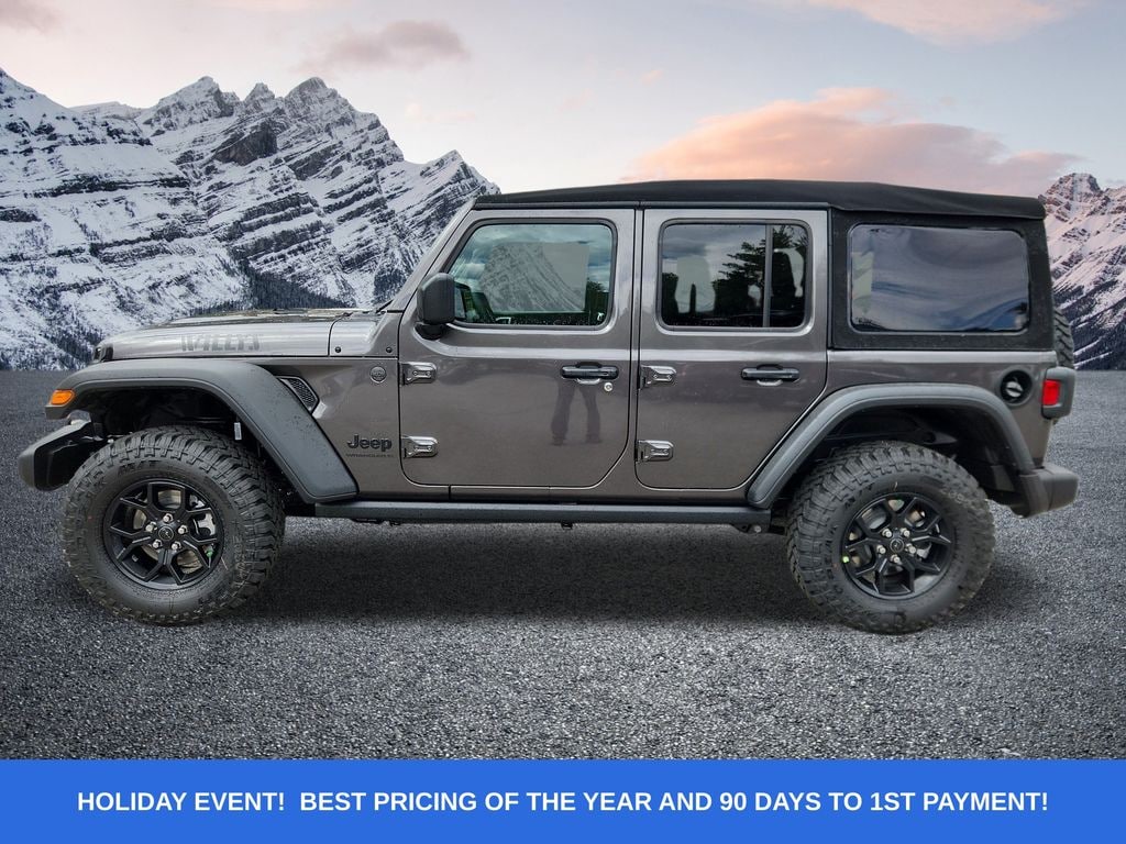 Check out all these great option's Convenience Group (2-Door Passive Entry, Front Door Locks, Air Conditioning w/Auto Temperature Control, Air Filtering, Cluster 7.0" TFT Color Display, Emergency/Assistance Call, Heated Front Seats, Heated Steering Wheel, Remote Start System, and Universal Garage Door Opener), Quick Order Package 22W Willys (4-Wheel Drive Swing Gate Decal, 7 & 4 Pin Wiring Harness, 97 MPH Vehicle Max Speed Calibration, Advanced Brake Assist, Automatic Headlamps, Auxiliary Switches, Black Grille, Class II Receiver Hitch, Conventional Differential Front Axle, Corning Gorilla Glass, Dana M210 Wide HD Tube Front Axle, Dana M220 Wide Rear Axle, Daytime Running Lamps LED Accents, Deep Tint Sunscreen Windows, E-Locker Rear Axle, Enhanced Adaptive Cruise Control, Front LED Fog Lamps, Full Speed Forward Collision Warning Plus, Injection Molded Black Rear Bumper, LED Premium Reflector Headlamps, Mold In Color Bumper w/Gloss Black, Molded in Color Rubicon Highline Flare, MOPAR All-Weather Floor Mats, Off-Road Plus Mode, Power Heated Mirrors, Premium Wrapped Steering Wheel, Security Alarm, Sun Visors w/Illuminated Vanity Mirrors, Wheels: 17" x 7.5" Painted Black, Willy's Suspension, and Willys Hood Decal), 110 MPH Vehicle Max Speed Calibration, 4-Wheel Disc Brakes, 8 Speakers, ABS brakes, Air Conditioning, AM/FM radio: SiriusXM, Apple CarPlay/Android Auto, Aux Battery, Brake assist, Cloth Low-Back Bucket Seats, Compass, Delay-off headlights, Driver door bin, Driver vanity mirror, Dual front impact airbags, Dual front side impact airbags, Electronic Stability Control, Front anti-roll bar, Front Bucket Seats, Front Center Armrest w/Storage, Front fog lights, Front reading lights, Illuminated entry, Integrated roll-over protection, Jeep Trail Rated Kit, Low tire pressure warning, Non-Lock Fuel Cap w/o Discriminator, Normal Duty Suspension, Occupant sensing airbag, Outside temperature display, Overhead airbag, Panic alarm, ParkView Rear Back-Up Camera, Passenger door bin, Passenger vanity mirror, Power steering, Power windows, Premium Black Sunrider Soft Top (DISC), Radio data system, Radio: Uconnect 5 w/12.3" Display, Rear anti-roll bar, Rear reading lights, Remote keyless entry, Speed control, Split folding rear seat, Steering wheel mounted audio controls, Stop-Start Dual Battery System, Tachometer, Telescoping steering wheel, Tilt steering wheel, Traction control, Trip computer, Variably intermittent wipers, and Wheels: 17" x 7.5" Black Steel Styled. Price includes: $1000 - 2025 West BC Bonus Cash . Exp. 01/05/2026 $1500 - 2025 National Bonus Cash . Exp. 01/05/2026 $2000 - 2025 National Holiday Select Inventory Bonus Cash. Exp. 01/05/2026 $2500 - 2025 National Retail Bonus Cash . Exp. 01/05/2026
