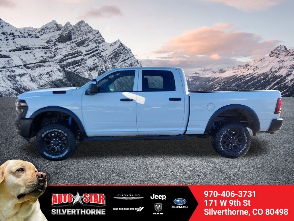 Check out all these great option's Bed Utility Group (LED Bed Lighting, MOPAR Deployable Bed Step, and MOPAR Spray in Bedliner), Power Wagon Package (Base Engine Controller, Black Wheel Center Hub, Black Wheel Flares, Front Disconnecting Stabilizer Bar, Front Electric Winch, Front Performance Tuned Shock Absorbers, Fuel Tank Skid Plate Shield, Hill Assist, ParkSense Front/Rear Park Assist System, Powder Coated Front Bumper, Powder Coated Rear Bumper, Raised Ride Height, RAM Articulink Suspension, Rear Performance Tuned Shock Absorbers, Rear Wheelhouse Liners, Tru-Lok Front and Rear Axles, and Wheels: 17" x 8.0" Black Painted Aluminum), Quick Order Package 2UA Tradesman, Tradesman Level 1 Equipment Group (115-Volt Auxiliary Front Power Outlet, 12" Touchscreen Display, 400W Inverter, 4G LTE Wi-Fi Hot Spot, Air Conditioning ATC with Dual Zone Control, Alexa Built-in, Apple CarPlay, Auto-Dimming Rear-View Mirror, Connected Travel and Traffic Services, Connectivity - US/Canada, Disassociated Touchscreen Display, Emergency Vehicle Alert System (EVAS), Exterior 115V AC Outlet, For Details, Visit DriveUconnect.com, For More Info, Call 800-643-2112, Global Telematics Box Module, Google Android Auto, GPS Antenna Input, GPS Navigation, HD Radio, Integrated Voice Command with Bluetooth, Off-Road Info Pages, Radio: Uconnect 5 Navigation with 12.0" Display, Rear Power Sliding Window, Selectable Tire Fill Alert, SiriusXM Radio Service, SiriusXM with 360L, Tinted Acoustic Windshield Glass, and Trailer Tow Pages), 2 Way Rear Headrest Seat, 4 Way Front Headrests, 4-Wheel Disc Brakes, 40/20/40 Split Bench Seat, 6 Speakers, ABS brakes, Air Conditioning, AM/FM radio: SiriusXM, Apple CarPlay/Android Auto, Black Exterior Mirrors, Brake assist, Clearance Lamps, Compass, Delay-off headlights, Driver door bin, Dual front impact airbags, Dual front side impact airbags, Electronic Stability Control, Front anti-roll bar, Front Armrest with Cupholders, Front Center Armrest w/Storage, Front fog lights, Front License Plate Bracket, Front reading lights, Fully automatic headlights, Illuminated entry, Low tire pressure warning, Manual Adjust 4-Way Driver Seat, Manual Adjust 4-Way Front Passenger Seat, Manual Folding Exterior Mirrors, Manuarl Telescoping Mirrors, Mopar Black Tubular Side Steps, MOPAR Front and Rear Rubber Floor Mats, MyFlexCare Service Plan, Occupant sensing airbag, Outside temperature display, Overhead airbag, Overhead console, Panic alarm, ParkView Rear Back-Up Camera, Passenger door bin, Passenger vanity mirror, Power steering, Power windows, Radio data system, Radio: Uconnect 5 with 8.4" Display, Rear anti-roll bar, Rear Folding Seat, Rear step bumper, Rear window defroster, Remote keyless entry, Remote USB Port - Charge Only, Speed control, Storage Tray, Tachometer, Tilt steering wheel, Traction control, Variably intermittent wipers, Voltmeter, and Wheels: 17" x 7.5" Black Steel StyleD. Price includes: $1000 - 2026 National Bonus Cash . Exp. 02/02/2026
