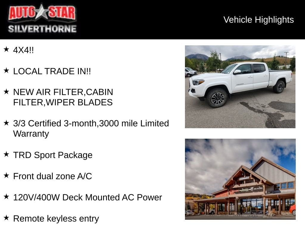 Adventure-ready and built to perform, this 2023 Toyota Tacoma TRD Sport V6 4X4 is a standout truck with impressive features and low miles odometer is 9,849 miles below market average! A local trade-in, its been freshly serviced with a new air filter, cabin filter, and wiper blades. Plus, it comes with our 3/3 Certified Limited Warranty 3 months or 3,000 miles of coverage for extra peace of mind.